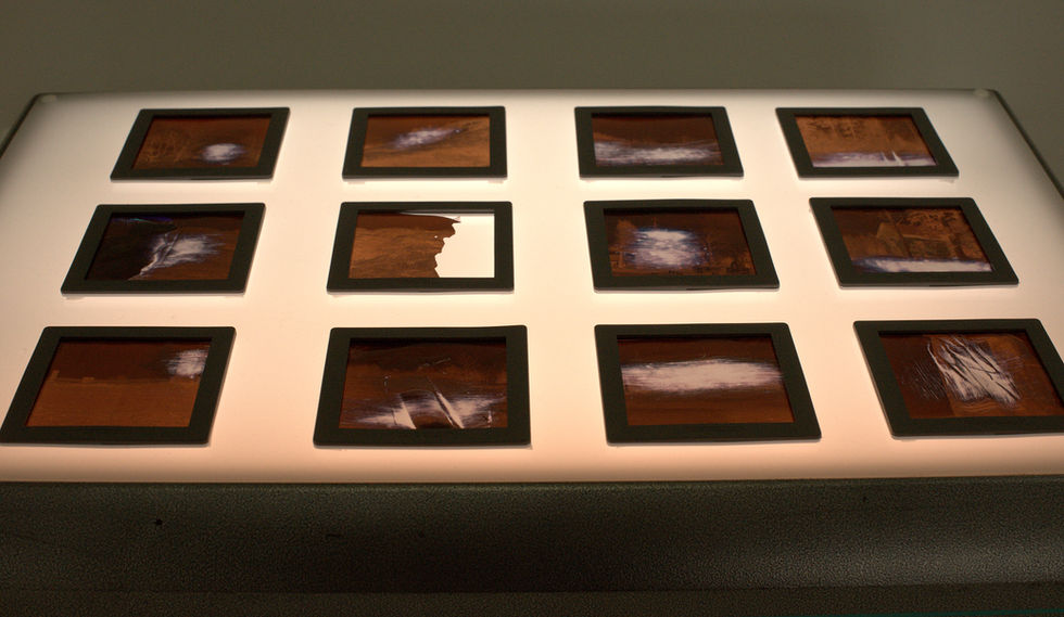 four Digital C-type prints, 105cm x 84cm, altered with sandpaper, images from destroyed negatives, 2015